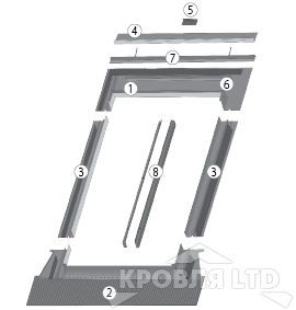 Оклад состоит из четырех основных элементов: верхнего, нижнего и двух боковых. Нижний элемент оклада имеет форму „фартука”, выполнен из алюминия (EZV-A) или свинца (EZV-P), имеет специальное клейкое покрытие, которое способствует герметичному соединению оклада с кровельным материалом. Благодаря своей гибкости и эластичности «фартук» легко принимает форму профиля кровельного покрытия. Для лучшей гидроизоляции окна в комплект оклада группы EZ входит водоотводящая планка, которую рекомендуется устанавливать на расстоянии 30 см над окном под наклоном, а также специальные поролоновые клинья, которые предохраняют кровельную систему в зоне мансардного окна от проникновения пыли, листьев и снега.