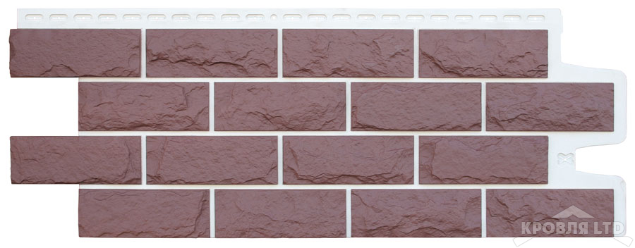 - Фасадная панель Grand Line Колотый камень Design Plus каштан с белым швом
