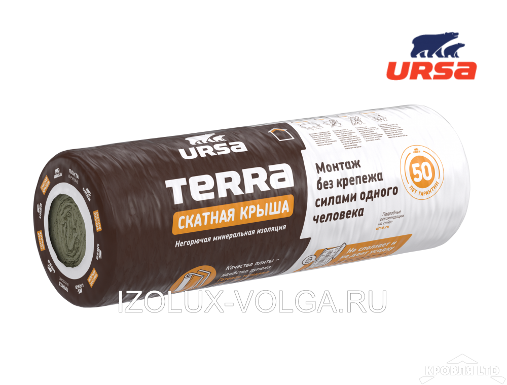 - Урса TERRA СКАТНАЯ КРЫША 35 QN (стекловолокно)150*1200*3900 0,702м3
