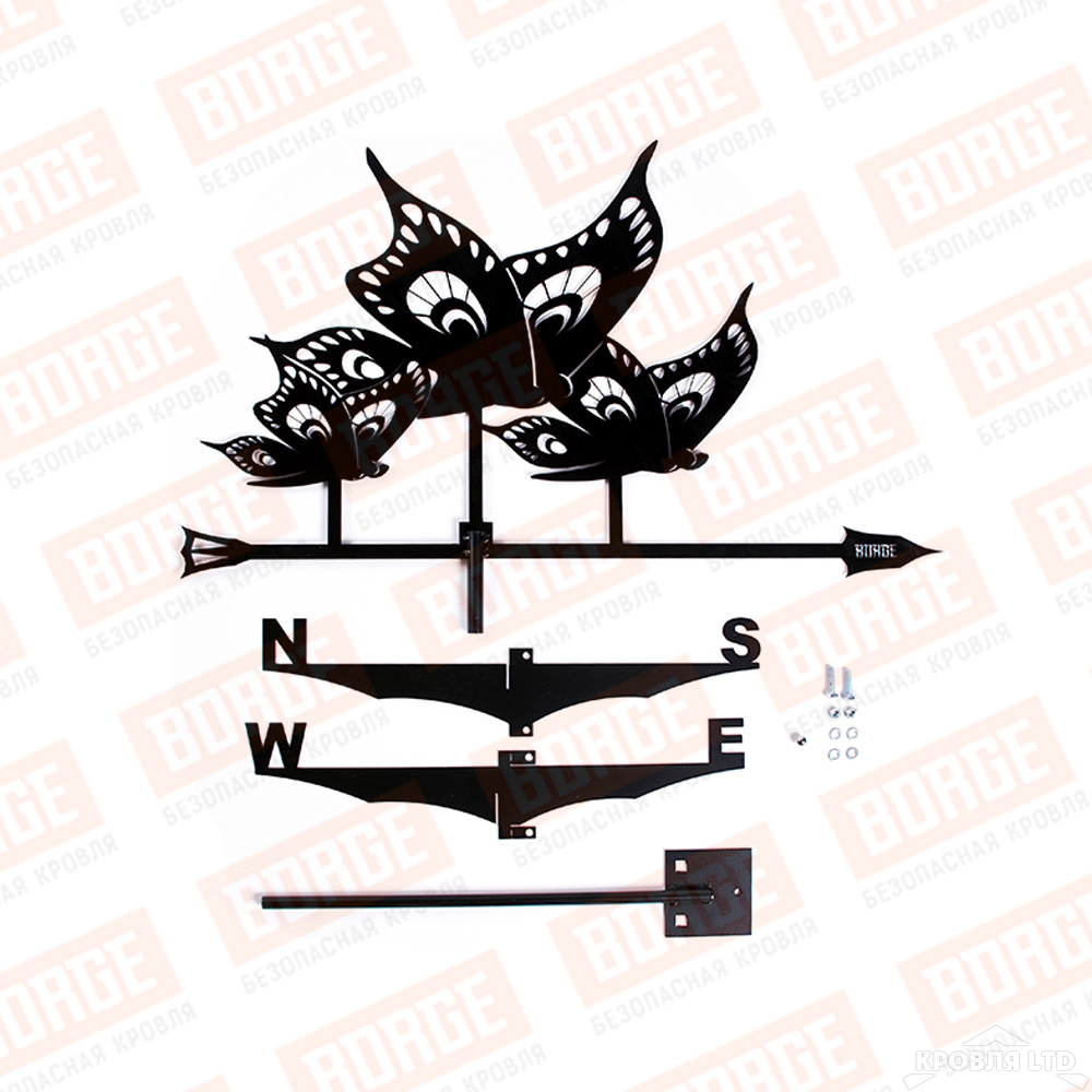 - Флюгер BORGE Бабочки, 700х410мм, чёрный (RAL 9005 matt)