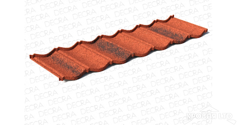 ОписаниеСамая популярная форма черепицы в Европе. Благодаря классике линий будет органично смотреться в любом архитектурном стиле. Композитная черепица Decra Classic имеет самый широкий выбор цветовых решений по сравнению с другими коллекциями. Основа изделия – стальной лист толщиною 0,43 мм, который выпускается одним из заводов концерна Икопал.Он покрыт с двух сторон защитным слоем алюцинка (275 г/м²). Это не оцинковка, это сплав алюминия с цинком, который наносится тонким слоем. У него более высокие антикоррозийные качества. Отсюда и большой срок эксплуатации черепицы до 50 лет.Следующий слой – эпоксидная смола. Она также наносится с двух сторон листа.Схожесть внешнего и нижнего покрытия на этом заканчиваются. Обратная сторона покрывается дополнительно слоем полиэстера (полимерный пластик), который прекрасно справляется с конденсатом, он иногда образуется на поверхности кровельного материала в процессе его эксплуатации в холодное время года.Что касается внешнего покрытия, то поверх эпоксидки наносится акриловая грунтовка. Ее основное назначение – создать адгезионную поверхность для скрепления изделия с базальтовой посыпкой. На грунтовку наносится сама посыпка, а сверху ее покрывают акриловой глазурью. Как видите, это на самом деле композитный материал, состоящий из нескольких слоев разных материалов.Характеристики