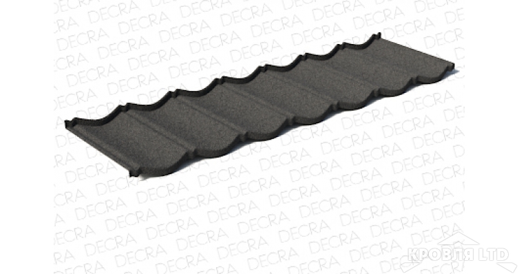 ОписаниеСамая популярная форма черепицы в Европе. Благодаря классике линий будет органично смотреться в любом архитектурном стиле. Композитная черепица Decra Classic имеет самый широкий выбор цветовых решений по сравнению с другими коллекциями. Основа изделия – стальной лист толщиною 0,43 мм, который выпускается одним из заводов концерна Икопал.Он покрыт с двух сторон защитным слоем алюцинка (275 г/м²). Это не оцинковка, это сплав алюминия с цинком, который наносится тонким слоем. У него более высокие антикоррозийные качества. Отсюда и большой срок эксплуатации черепицы до 50 лет.Следующий слой – эпоксидная смола. Она также наносится с двух сторон листа.Схожесть внешнего и нижнего покрытия на этом заканчиваются. Обратная сторона покрывается дополнительно слоем полиэстера (полимерный пластик), который прекрасно справляется с конденсатом, он иногда образуется на поверхности кровельного материала в процессе его эксплуатации в холодное время года.Что касается внешнего покрытия, то поверх эпоксидки наносится акриловая грунтовка. Ее основное назначение – создать адгезионную поверхность для скрепления изделия с базальтовой посыпкой. На грунтовку наносится сама посыпка, а сверху ее покрывают акриловой глазурью. Как видите, это на самом деле композитный материал, состоящий из нескольких слоев разных материалов.Характеристики