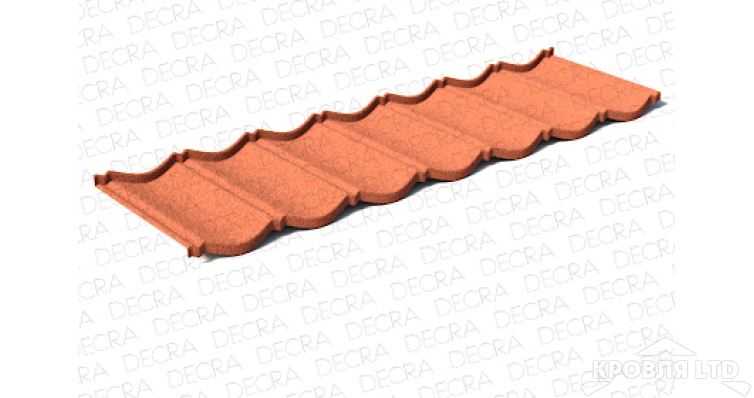 ОписаниеСамая популярная форма черепицы в Европе. Благодаря классике линий будет органично смотреться в любом архитектурном стиле. Композитная черепица Decra Classic имеет самый широкий выбор цветовых решений по сравнению с другими коллекциями. Основа изделия – стальной лист толщиною 0,43 мм, который выпускается одним из заводов концерна Икопал.Он покрыт с двух сторон защитным слоем алюцинка (275 г/м²). Это не оцинковка, это сплав алюминия с цинком, который наносится тонким слоем. У него более высокие антикоррозийные качества. Отсюда и большой срок эксплуатации черепицы до 50 лет.Следующий слой – эпоксидная смола. Она также наносится с двух сторон листа.Схожесть внешнего и нижнего покрытия на этом заканчиваются. Обратная сторона покрывается дополнительно слоем полиэстера (полимерный пластик), который прекрасно справляется с конденсатом, он иногда образуется на поверхности кровельного материала в процессе его эксплуатации в холодное время года.Что касается внешнего покрытия, то поверх эпоксидки наносится акриловая грунтовка. Ее основное назначение – создать адгезионную поверхность для скрепления изделия с базальтовой посыпкой. На грунтовку наносится сама посыпка, а сверху ее покрывают акриловой глазурью. Как видите, это на самом деле композитный материал, состоящий из нескольких слоев разных материалов.Характеристики