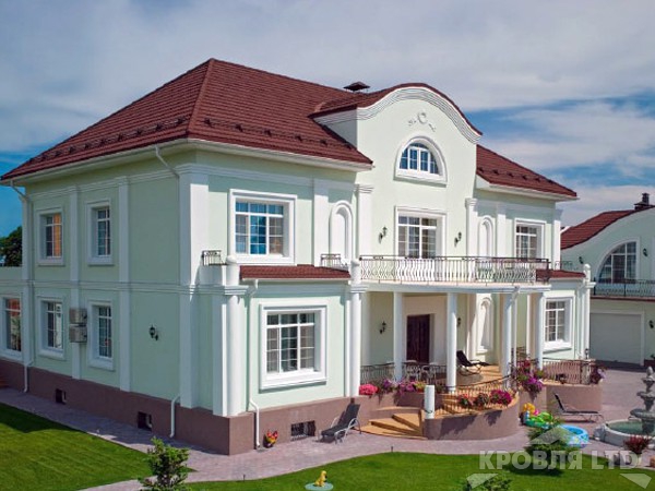 ОписаниеОсновой композитной металлочерепицы служит стальной лист, толщиной 0,45 мм, 0,6 мм или 0,9 мм. Все аксессуары (доборные элементы) изготавливаются из стали 0,6мм. В каждую страну по умолчанию завозится металл определенной толщины, выбор которой зависит от норм и требований к строительству, а также погодных условий. В Англию и Израиль, например - 0,9 мм. Применение металла большей толщины позволяет избавиться от вибрации, а, следовательно, эффекта гудения в странах с повышенной ветровой нагрузкой. Для изготовление панелей, которые завозятся в Россию используется металл фирмы Арселор с содержанием цинка 180 г/м2 и толщиной 0,45 мм. Однако под заказ может быть привезена композитная металлочерепица любой толщины. Стальной лист покрыт с двух сторон алюмоцинковым сплавом, защищающим металл от коррозии в шесть раз лучше, чем чистый цинк. Metrotile с алюмоцинковым покрытием объединяет в себе лучшие свойства стали, цинка и алюминия, значительно увеличивая коррозиестойкость, истираемость и механическую прочность изделий, а также повышает сопротивляемость ультрафиолету и негативной деятельности бактерий и плесени. На него последовательно нанесены несколько слоев: акриловая грунтовка, гранулы натурального камня (базальт) и прозрачная акриловая глазурь. Акриловая грунтовка создает дополнительную антикоррозионную защиту металла, а также выполняет важную функцию смазки пресса во время производства черепицы. К середине 2011 планируется плавное замещение базальтовых гранул на кварц. Основным преимуществом кварца является малая водопоглощаемость. Снижение количества влаги позволяет замедлить рост плесени и лишайника, что очень актуально для Европы, где температура окружающей среды редко опускается ниже нуля градусов. В свою очередь кварц может быть крупным или мелким.Профиль Metrotile Gallo, позволит выглядеть Вашему дому, как вилла. Gallo создаст шарм и неповторимость Вашей кровли.Характеристики
