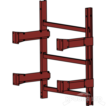 - Пожарная лестница Универсальная Rofsystems П1-1, Ступень 800 мм Полиэстер RAL 3009 Красная окись , 1,05 м