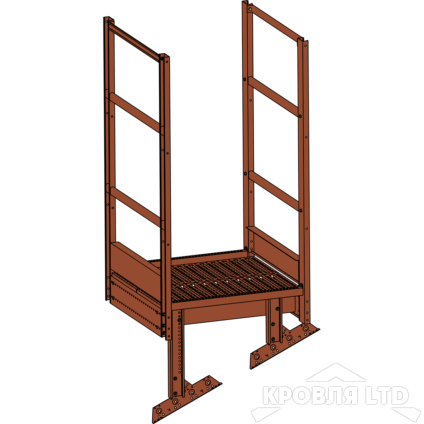- Площадка выхода пожарной лестницы, Ступенька 800 мм. RAL 8004 Коричневая медь, 1,15 м